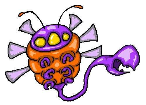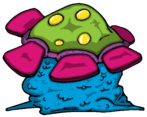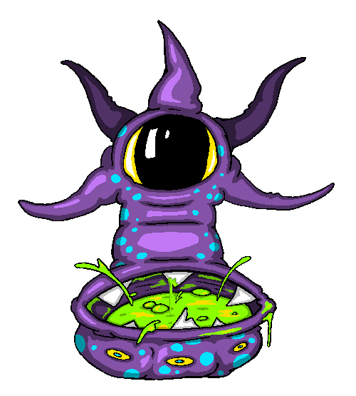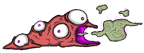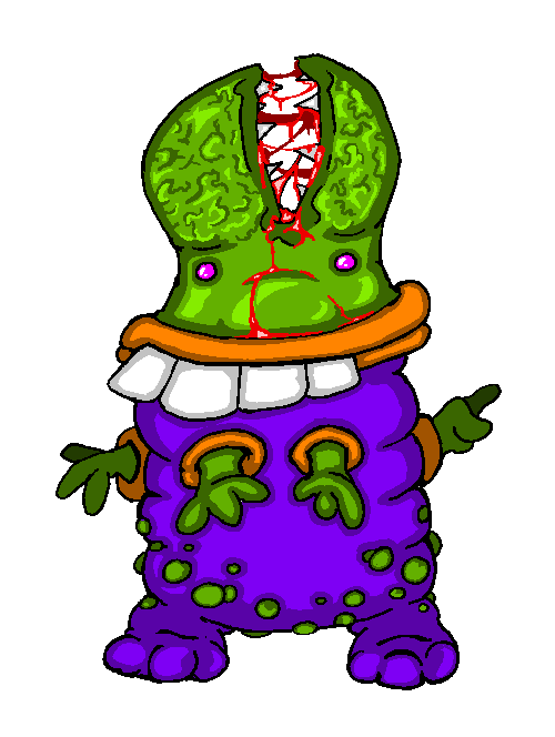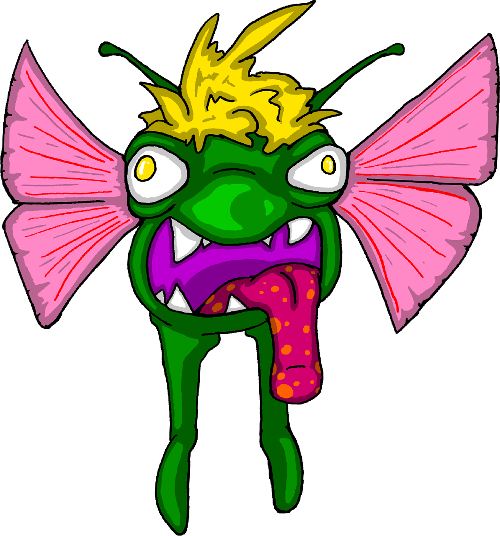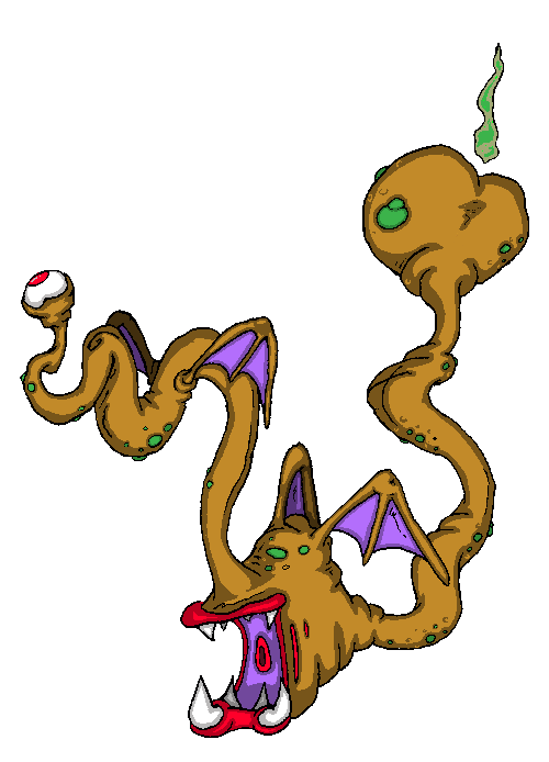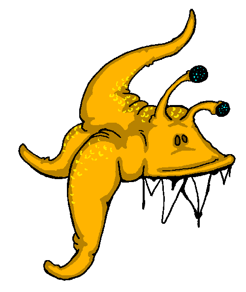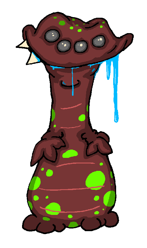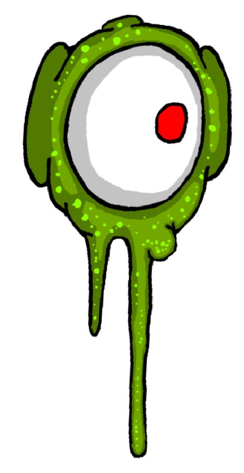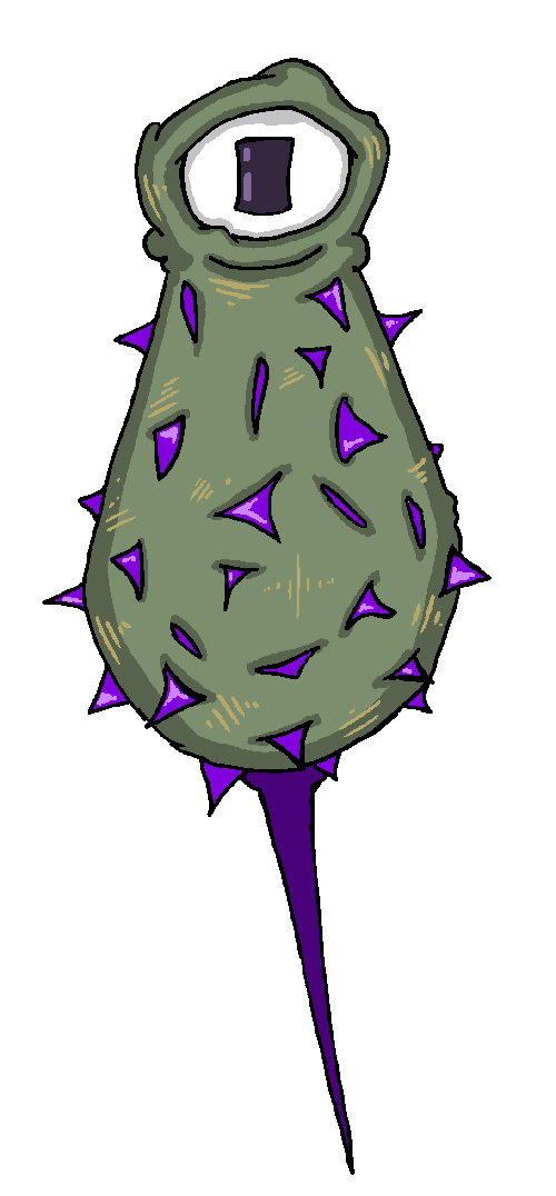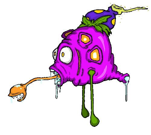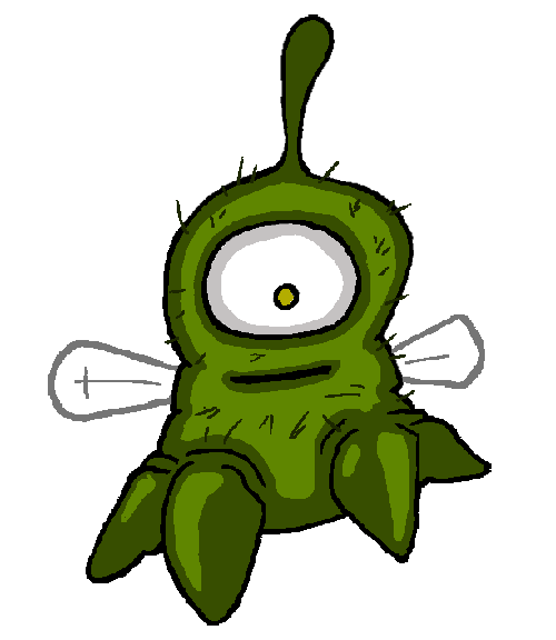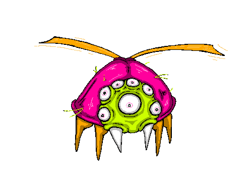 The Buggo: a clumsy, bumbly, bottom-heavy creature that features eyes which point in different directions and dwells in swamplike environments. At an average of 10 pounds and 2 feet tall, they are light for their size. Buggo will charge in the light and glow in the dark as a way to attract predators, which seems like a terrible idea - except that this is the only way for Buggo to reproduce. This is Buggo's chief desire. While being digested, Buggo transforms into a fungus that sustains itself on the digestive juices of their host. This process rapidly reproduces the Buggo spores, and thus the next generation of Buggo are born. To help ensure that the process is less likely to be interrupted, any creature that consumes a Buggo becomes more actively inclined toward its own death.